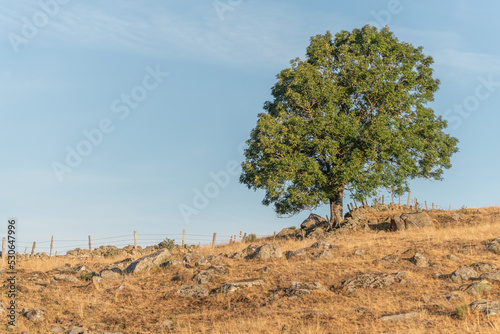 Obraz premium Large solitary tree on Aubrac plateau in summer.