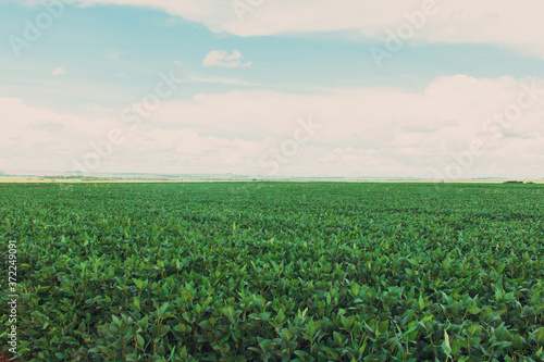 © Andre Nery, Fototapeta premium Large soy plantation farm in a sunny cloudy day