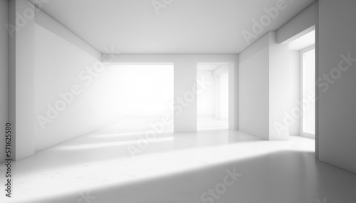 © Imaster, Fototapeta premium Large spacious white interior. 3D render