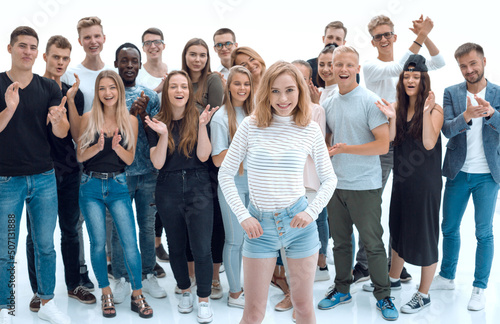 Obraz premium large team of youth applauding their leader .
