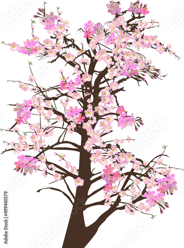 Fototapeta premium large tree in pink fine blooms on white