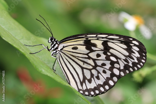 Obraz premium Large Tree Nymphs butterfly and green leaf