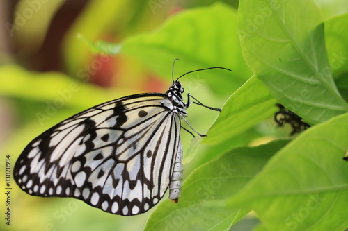 Fototapeta premium Large Tree Nymphs butterfly and green leaf