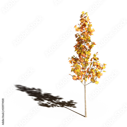 Obraz premium large tree with a shadow under it, isolated on white background, 3D...