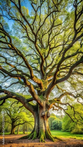 © udomsak, Fototapeta premium Large tree with gnarled branches and trunk in forest landscape
