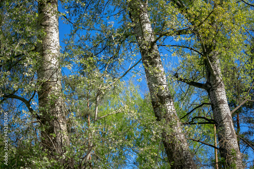 © Anatoliy, Fototapeta premium Large trees against the blue sky.