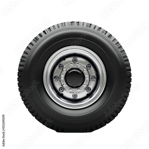 © Tohamina, Obraz premium Large truck tire and wheel close up view black tire silver wheel automotive part