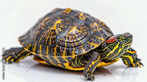Obraz premium Large turtle isolated on a white background, showcasing its unique features...