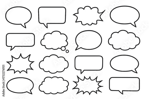 Obraz premium Large vector set of empty speech bubbles. Retro comic book style talk and thought clouds. Black and white sticker collection for dialogue, messages, quotes, and pop art design.