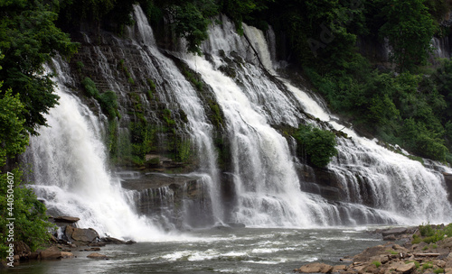 © Amanda, Fototapeta premium Large waterfalls cascading over rock ledges.