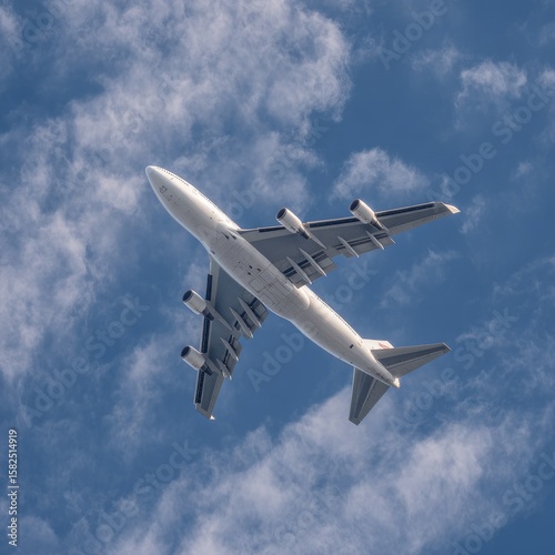 © studio, Obraz premium Large white airplane high above puffy clouds