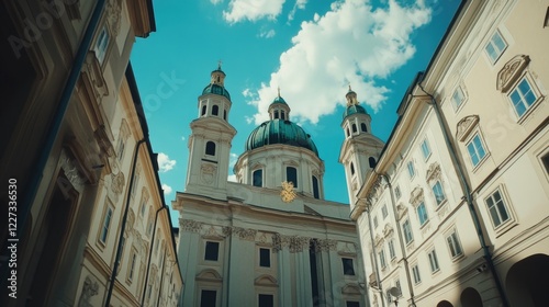 © Goncharenko, Fototapeta premium Large White Building with Clock