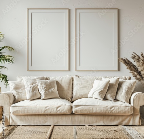 © olegganko, Naklejka premium Large White Couch in a Living Room