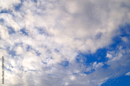 Fototapeta premium Large white cumulus clouds on a blue sky for background or ecology or nature.