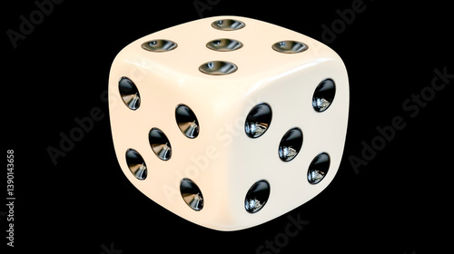 Fototapeta premium Large white dice with black dots isolated on a solid black background,...