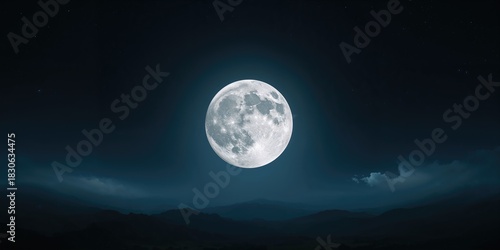 © VirtualVista, Fototapeta premium Large white moon in the night sky used as a background for text, emphasizing celestial themes