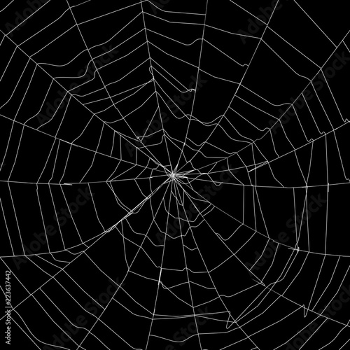 © Leigh Prather, Obraz premium Large white spider web on black - 3d render
