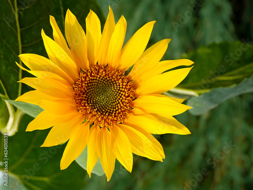 Fototapeta premium Large yellow sunflower close-up shot on a sunny day