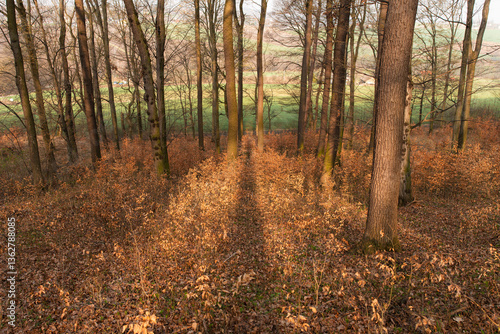 © Elżbieta Kaps, Obraz premium Las bukowy na wiosnę, wiosenne tło.