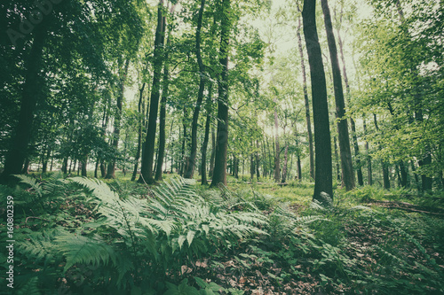 © ohenze, Fototapeta premium Las bukowy z paproci na dnie lasu