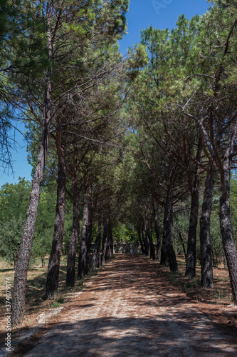 Fototapeta premium las drzewa droga leśna liście lato