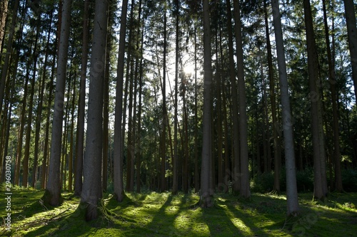 Fototapeta premium Las świerkowy w październiku w Bawarii