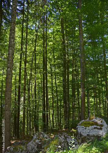 © dragoncello, Fototapeta premium Las w pobliżu Pontebba 1 Cienisty las sosnowy w pobliżu Pontebba we Friuli Venezia Giulia, północno-wschodnie Włochy
