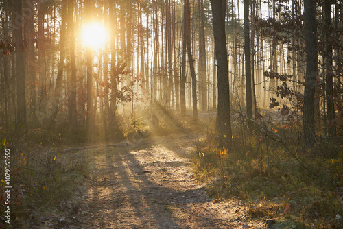 © Marcin Łazarczyk, Fototapeta premium las,wschód słońca,jesień