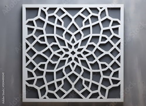 © Eva13186707, Naklejka premium Laser Cut Islamic Geometric Pattern on Concrete Wall