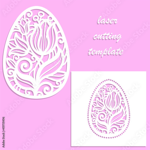 © Zerlina, Obraz premium Laser cutting template. Easter egg with a floral tracery pattern. Vector