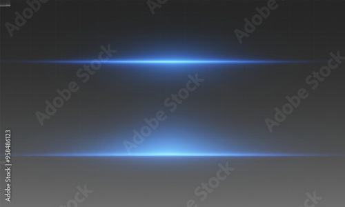 © Ольга Гордеева, Obraz premium Laser lines of light. Horizontal neon light. Neon blue horizontal speed lines. Glowing stripes. Laser beams. light lines of movement and speed in neon color.Beautiful flash of light and sparks.