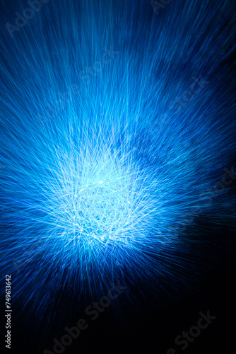 Obraz premium Laser projections with light blue rays. The play of cosmic rays and light