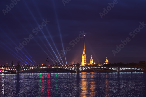 © lizavetta, Fototapeta premium Laser show on the Neva.
