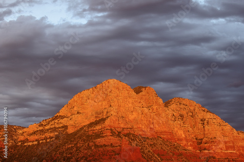 Fototapeta premium Last light near Sedona, Arizona. Beautiful cloud sky and illuminated red rock...