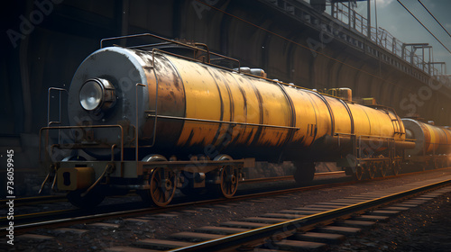 Naklejka premium Last tank with oil petroleum of the cargo train. Railway fuel supply. Neural network AI generated art