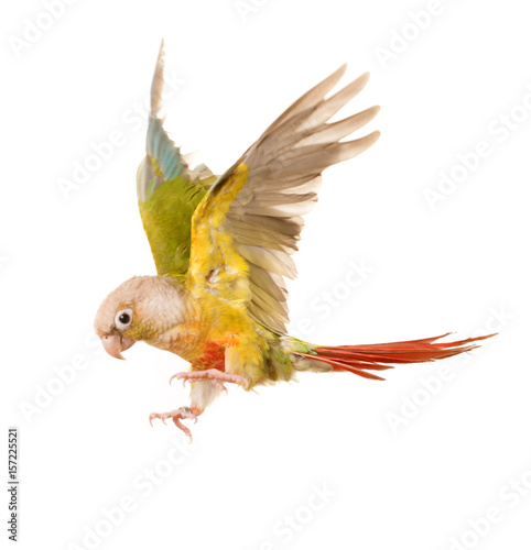 © cynoclub, Obraz premium latająca papuga o zielonych policzkach