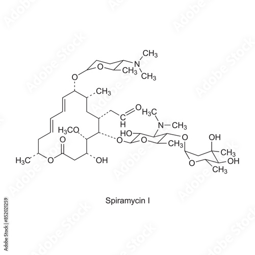 © Basstock, Naklejka premium Latanoprostene bunod flat skeletal molecular structure Prostaglandin Analogue drug used in Glaucoma treatment. Vector illustration scientific diagram.