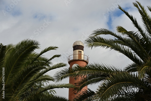 © Miroslaw, Fototapeta premium latarnia morska czerwona cegła palmy
