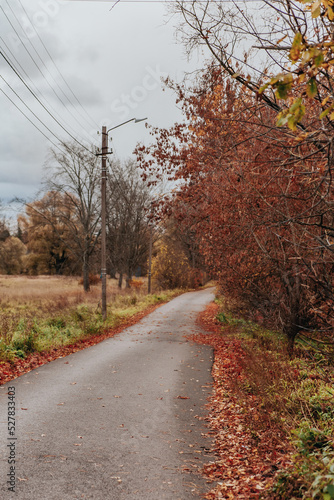 © DariaTrofimova, Obraz premium Late autumn in city. Bare trees and brown leaves