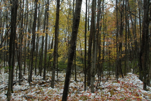© Ted, Obraz premium Late Fall Leaves Trees and Snow004