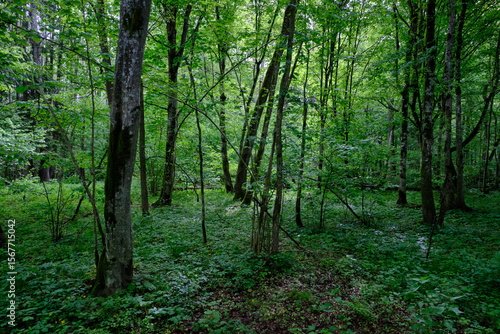 © Aleksander Bolbot, Fototapeta premium Late springtime deciduous forest with fresh green rich trees around