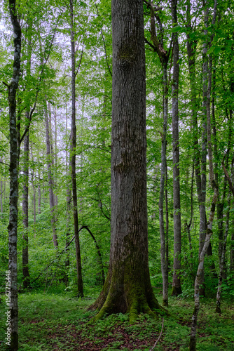© Aleksander Bolbot, Fototapeta premium Late springtime deciduous forest with fresh green rich trees around