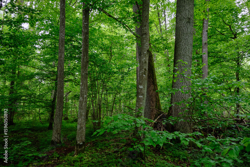 © Aleksander Bolbot, Fototapeta premium Late springtime deciduous forest with fresh green rich trees around