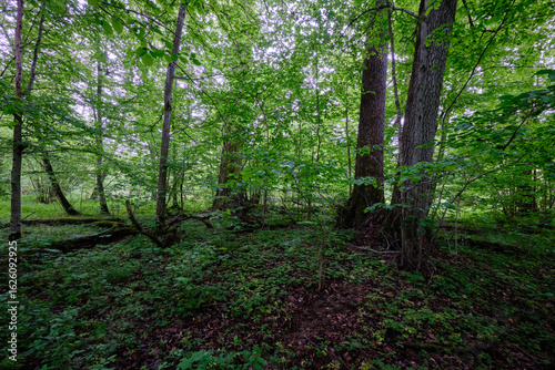 Obraz premium Late springtime deciduous forest with fresh green rich trees around