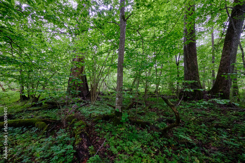 © Aleksander Bolbot, Fototapeta premium Late springtime deciduous forest with fresh green rich trees around