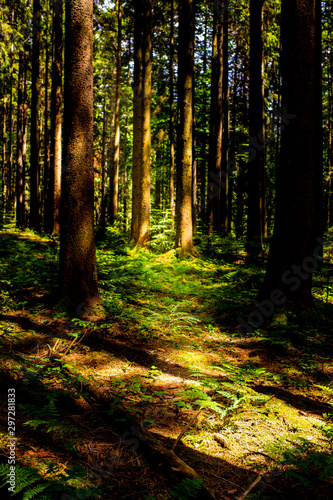Fototapeta premium late summer in the forrest with beauitful soft light and a stunning green