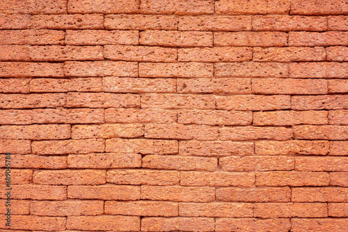 Obraz premium Laterite Stone wall surface red stone brick blocks background with selective focus