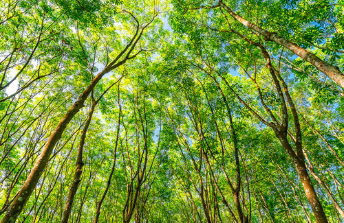 © jimbophotoart, Obraz premium Latex rubber plantation or para rubber tree in southern Thailand