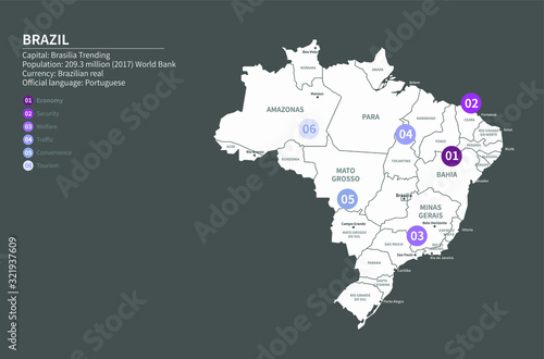 © Tuna salmon, Fototapeta premium latin america country map. south america country map. brazil map.
