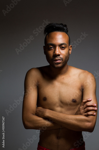 © pablocroatto, Fototapeta premium Latin man posing indoor over a grey wall.